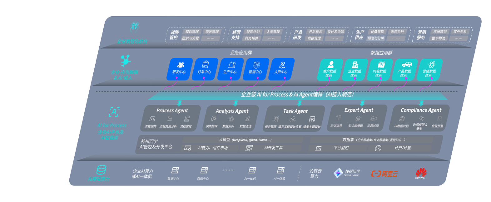 NG28问学智车解决方案是一套基于AI技术的汽车行业智能化系统,覆盖从底层算力到顶层AI应用的全栈方案。方案由算力层、模型层和应用层组成:算力层,方案支持多种一体机配置,具备云端灵活部署、多云适配以及动态优化计算资源的能力;模型层,NG28问学平台版提供了企业级AI应用一站式构建与管理平台,支持基于后训练强化技术的汽车企业专属模型的训练、评测和运营;应用层,NG28问学DeepSeek版提供包括超级员工、智能招采、智能营销、智能客服、AI for BI等一系列解决方案,可助力汽车行业实现数字化转型,让管理更智能、响应更敏捷。